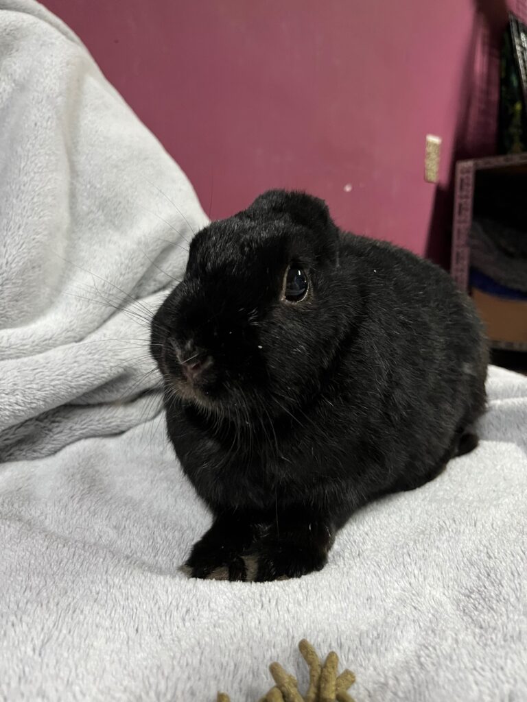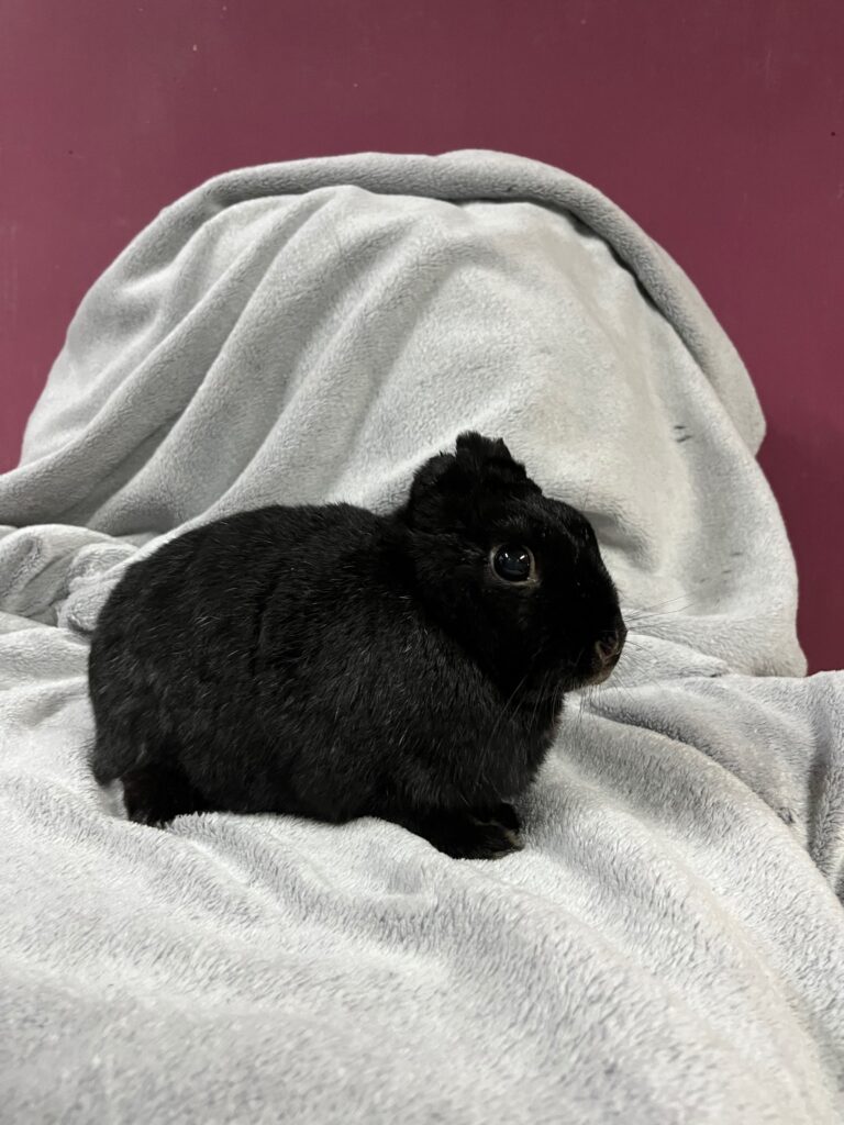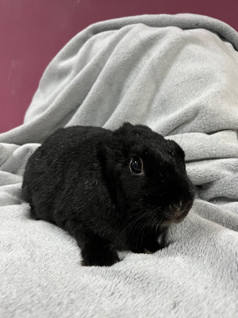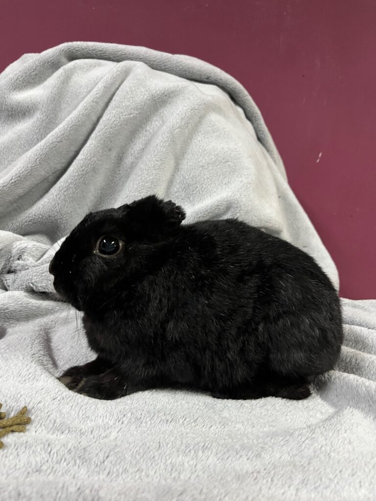 Jej imię nie jest przypadkowe – Uszanka nie ma uszu. Taka trafiła do fundacji. Nie znamy jej historii: być może to efekt nieleczonej choroby, a być może konsekwencja porzucenia i narażenia na inne, niebezpieczne zwierzęta. Jedno wiemy na pewno: dziś to nie ma znaczenia, bo Uszanka radzi sobie znakomicie 🖤🐰